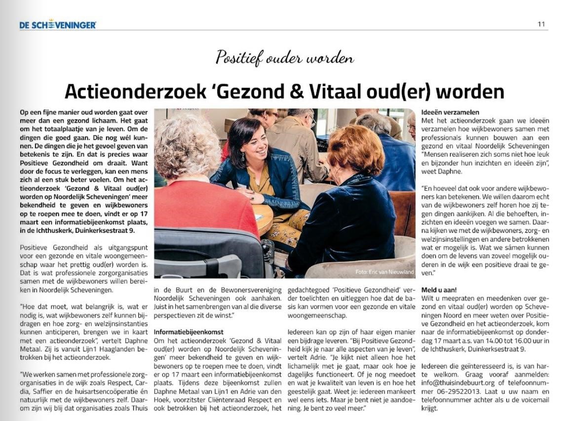 Het is de droom van de kerngroep (Thuis in de Buurt, Cardia, Saffier, Respect Wonen-Zorg-Welzijn en de Scheveningse huisartsencoöperatie SCH-2017) om samen te bouwen aan een vitale gemeenschap op Scheveningen Noord.